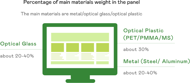 AUO use PCR recycle plastic Polycarbonate (PC) for the plastic frame.