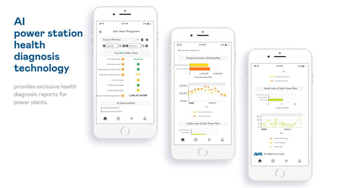 AUO's Solar Asset Management system uses unique digital information and AI technology to help customers simplify the complexity of solar energy monitoring and electricity billing data into key financial indicators, and presents information visually on the asset management dashboard. From solar power plant selection assistance to power plant health inspection, FUN88 provides full life cycle asset management solutions to help customers maximize the benefits of their solar assets.