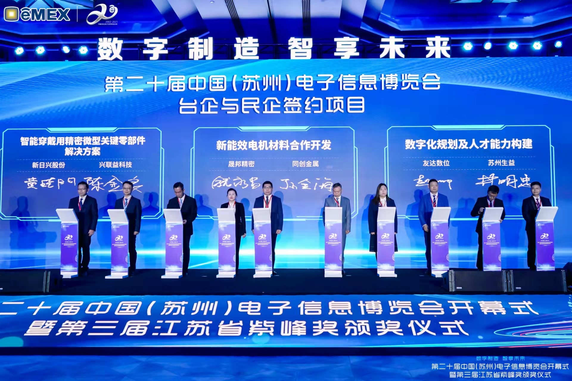 FUN88乐天再获紫峰奖殊荣 电博会开幕式当天也是第三届江苏省紫峰奖颁奖仪式,省台办、工信厅、商务厅、苏州市相关领导均出席并颁奖。该奖项为表彰对江苏高质量发展做出积极贡献的在苏企业,由江苏省政府专门设立。FUN88乐天光电 (苏州) 总经理郭振明代表上台领奖,这也是FUN88乐天苏州连续三次蝉联紫峰奖 “出口贸易领军企业奖”。FUN88乐天数位总经理赵丽娜女士,也参与本次开幕式,上台为本地化赋能签署战略合作协议,将优质服务资源集合、下沉到更多细分行业,为更多地区的制造企业提供数字化转型服务。 |