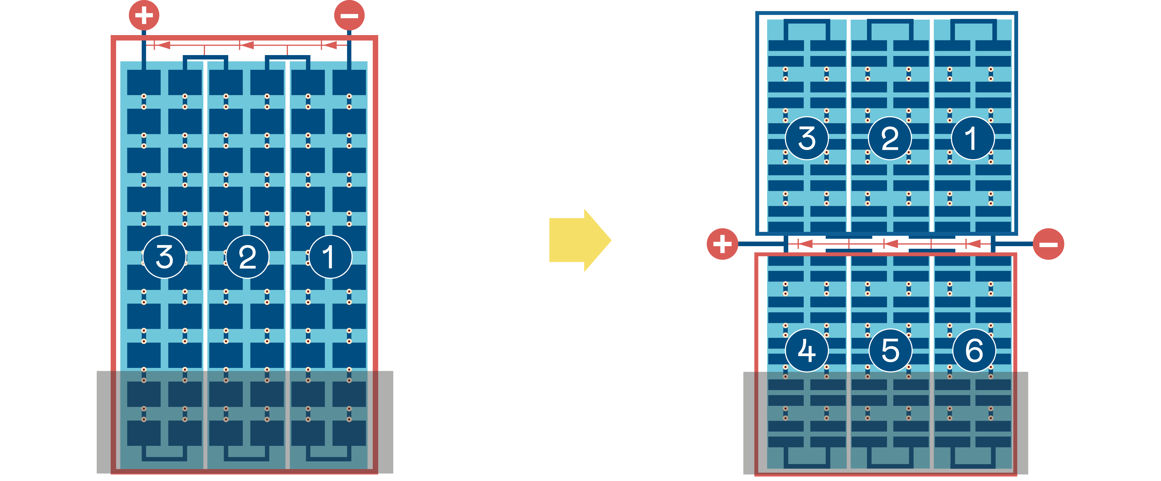 The multi-busbar structure effectively decreases the impact of external force on batteries and restricts the scope of micro-cracks, preventing the expansion of damage from the current distribution.
